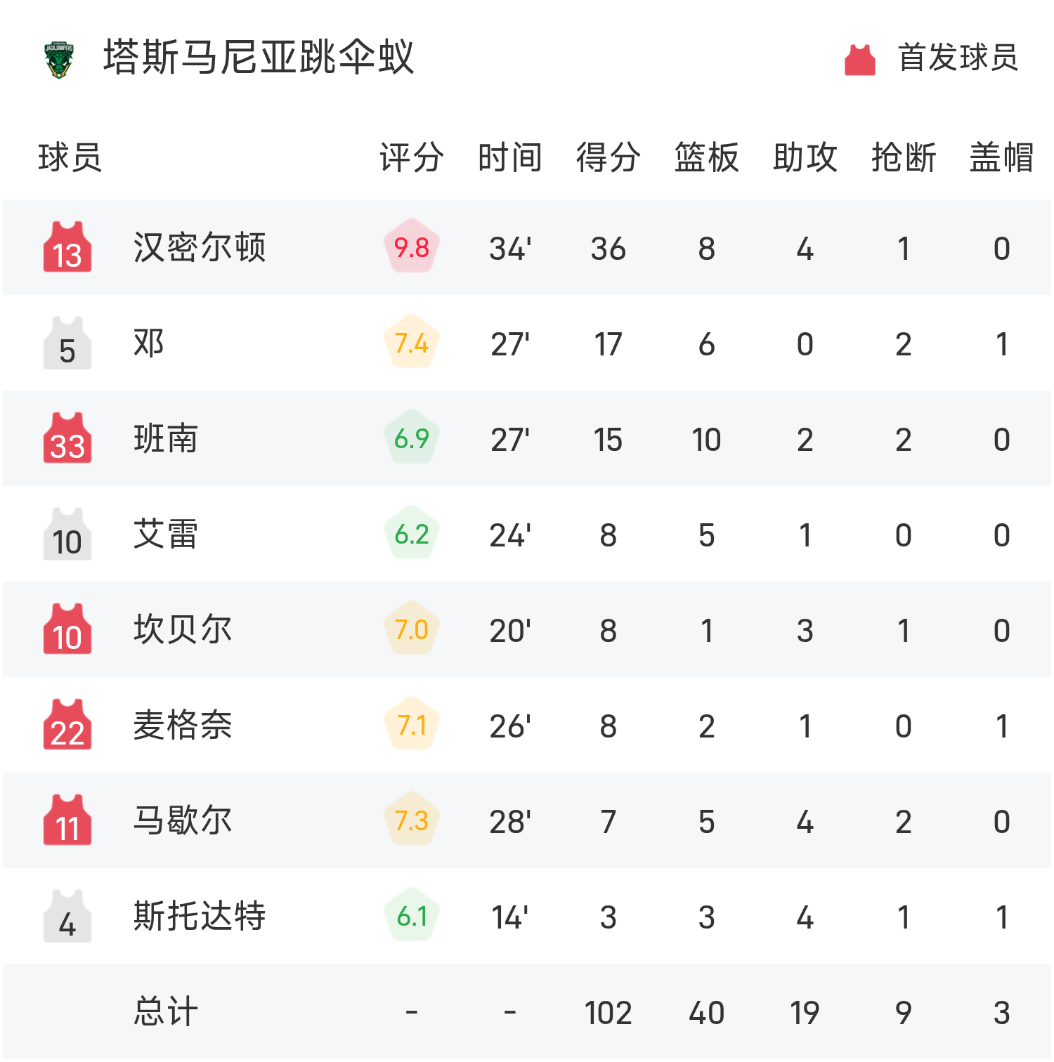 6686 กีฬา 6 พฤศจิกายน ข่าว ในฤดูกาลปกติ 25/26 ของ NBL มดกระโดดร่มของแทสเมเนียเล่นกับเมลเบิร์นฟีนิกซ์ตะวันออกเฉียงใต้ จบเกม แทสเมเนียน ดิ่งพสุธา มดส์ แพ้ เมลเบิร์น ฟีนิกซ์ ตะวันออกเฉียงใต้ 102-103 โซปี้ทำไป 28 แต้ม 3 รีบาวด์ 4 แอสซิสต์ นำทีมคว้าชัย แฮมิลตันทำคะแนนสูงสุดในเกม 36 แต้ม 8 รีบาวน์และ 4 แอสซิสต์