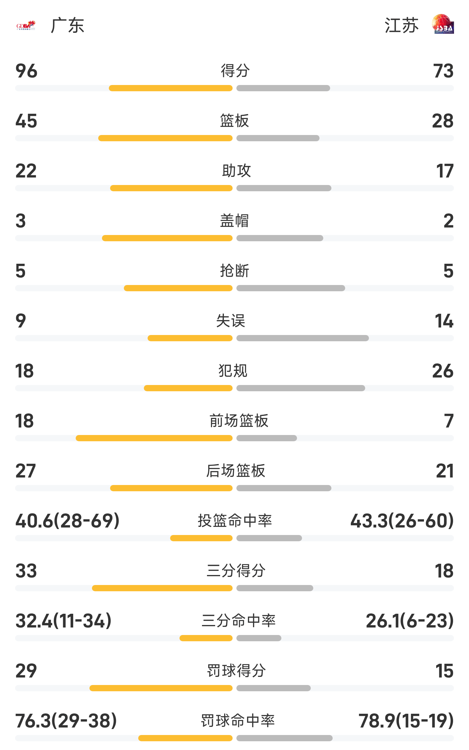 รายงานเกมบาสเก็ตบอลชายกีฬาแห่งชาติ: ซูเจี๋ยทำคะแนน 29 แต้มกวางตุ้งพลิกกลับเอาชนะเจียงซู 96-73