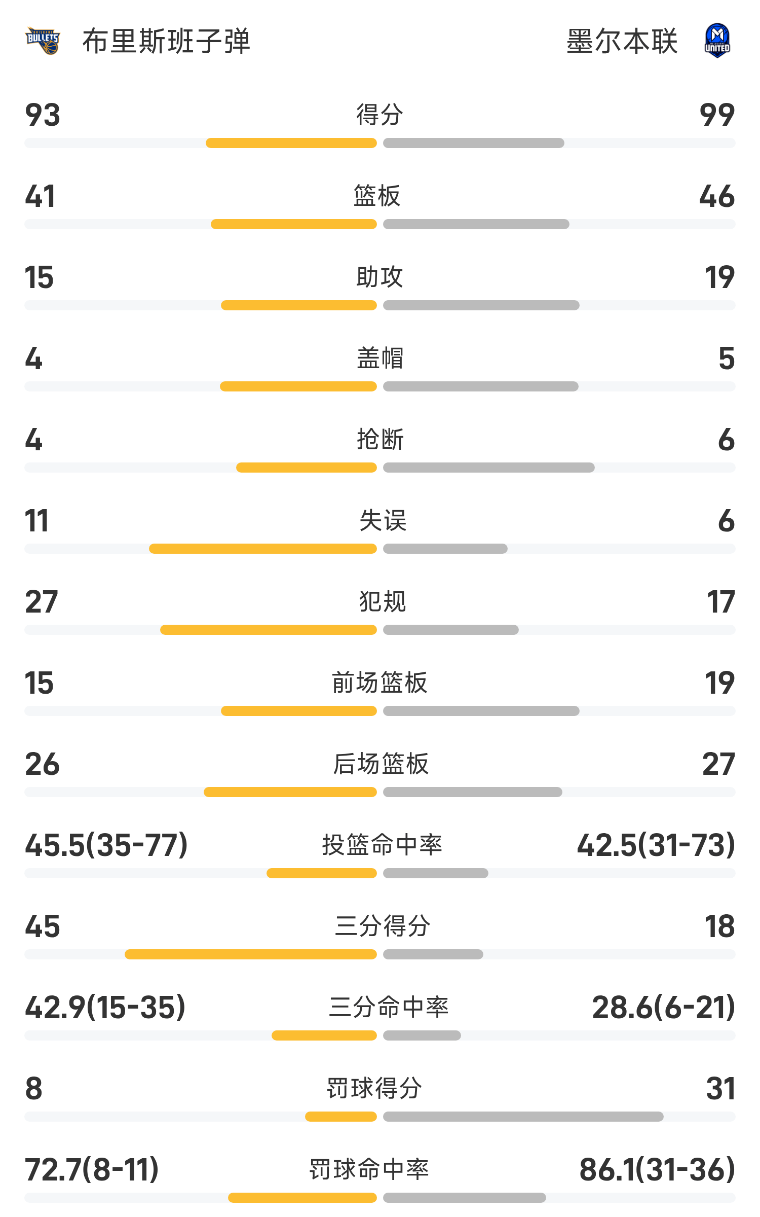 จบเกม เมลเบิร์น ยูไนเต็ด เอาชนะ บริสเบน บุลเล็ตส์ 99-93