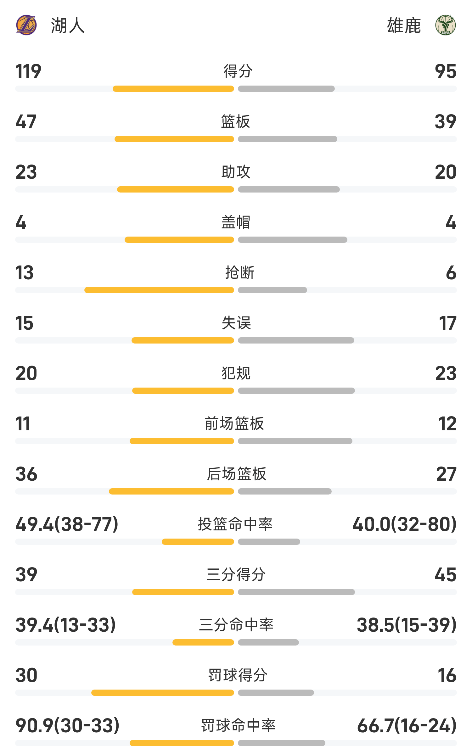 ในตอนท้ายของเกม บัคส์ แพ้ เลเกอร์ส 95-119