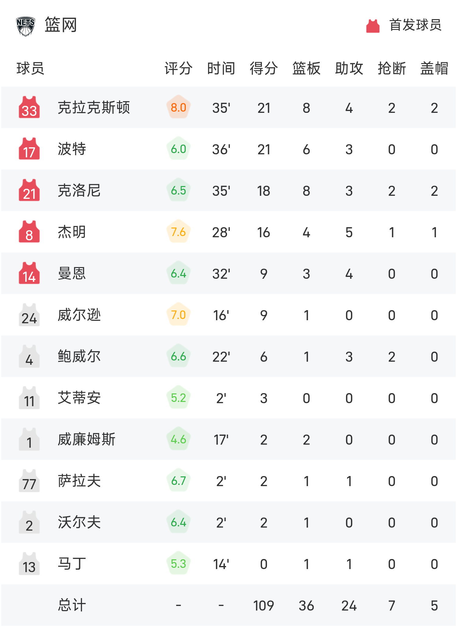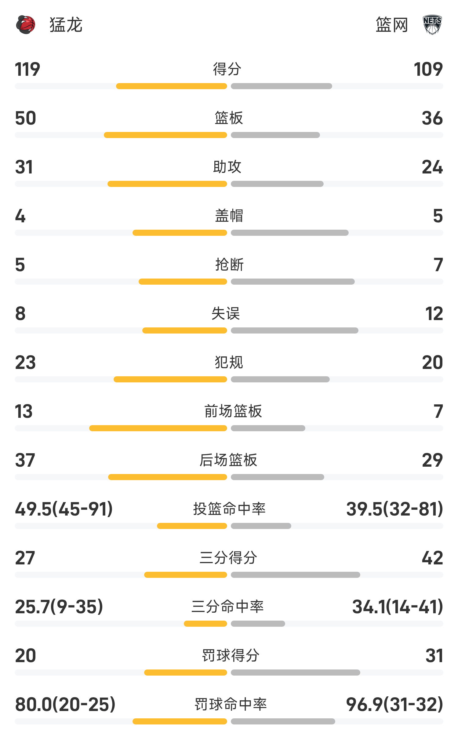 ในตอนท้ายของเกม Nets แพ้ Raptors 109-119