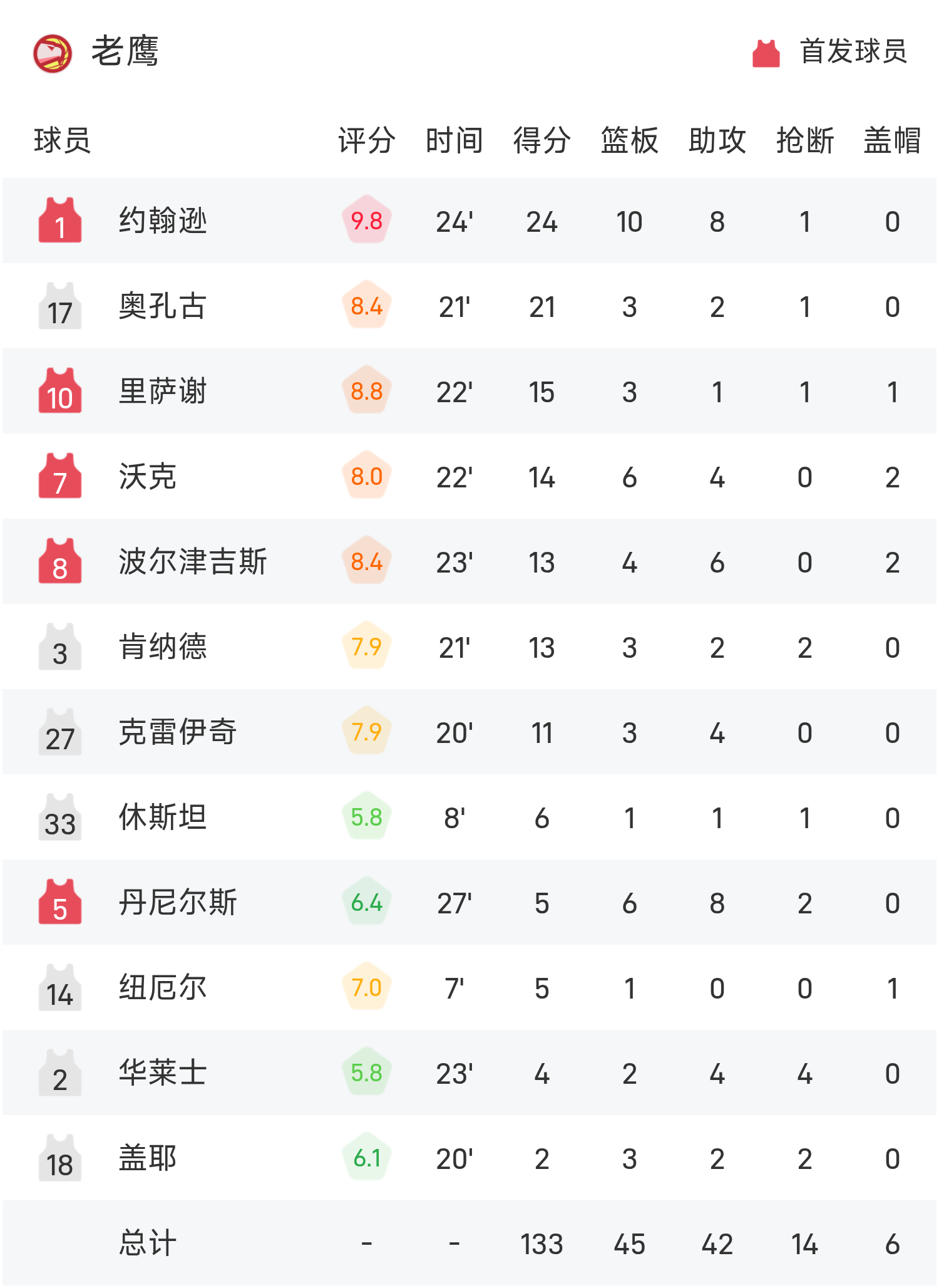 รายงานเกม NBA จอห์นสันมี 24 แต้ม 10 รีบาวด์ 8 แอสซิสต์ ฮอว์กส์เอาชนะคิงส์ 133-100