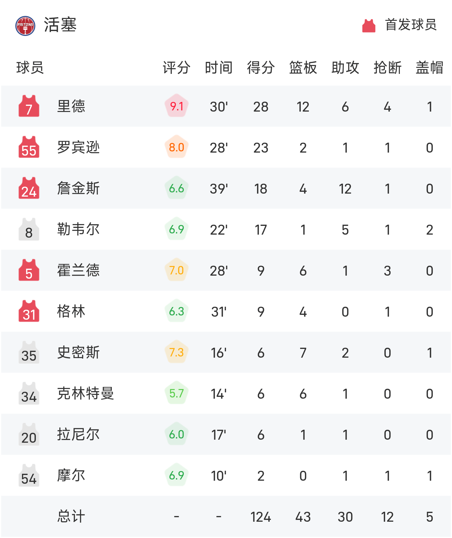 รายงานเกม NBA เรด 28 แต้ม 12 รีบาวด์ 6 แอสซิสต์ พิสตันส์ เอาชนะ บูลส์ 124-113