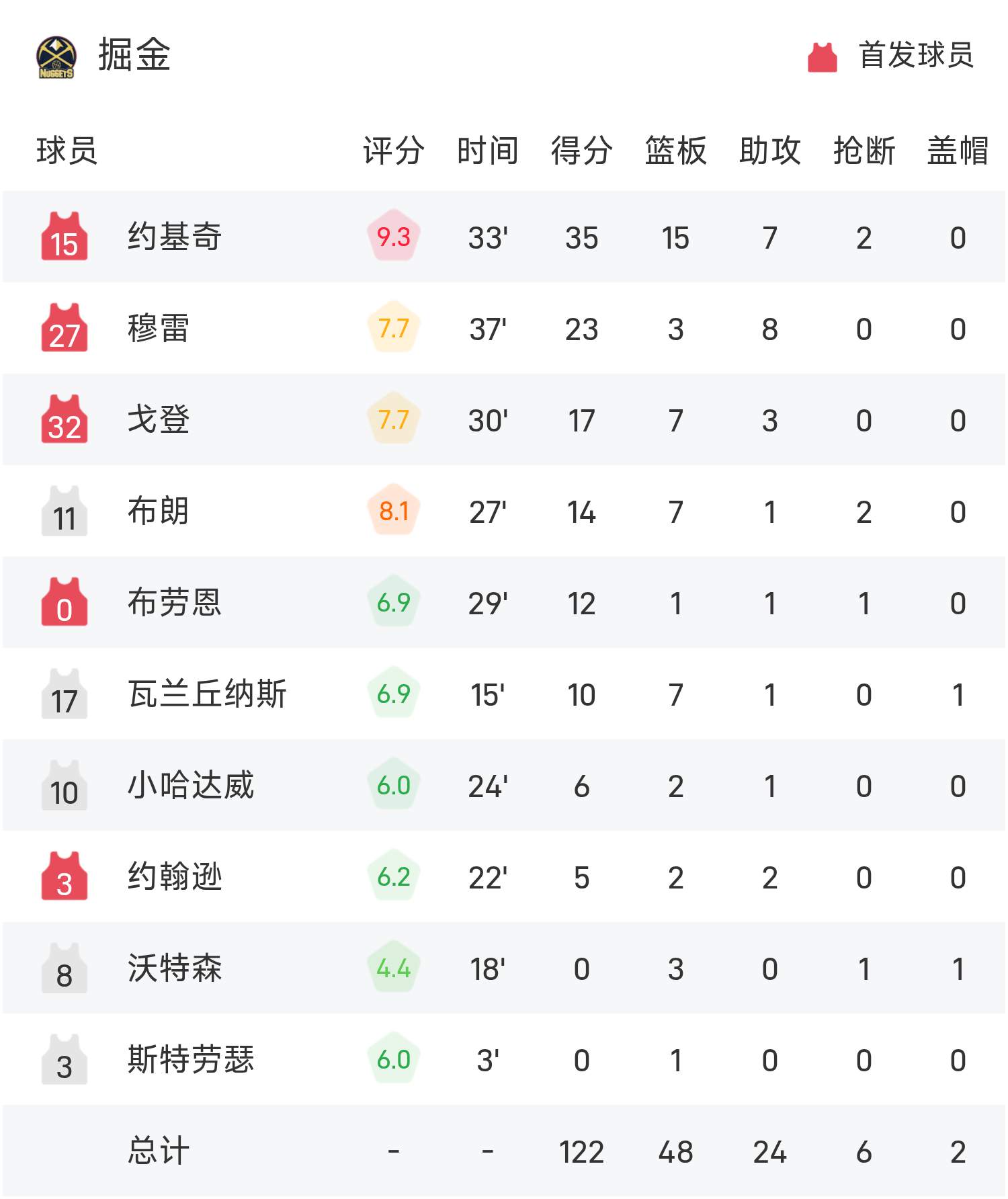 รายงานเกม NBA โยคิช 35 แต้ม 15 รีบาวด์ 7 แอสซิสต์ นักเก็ตเอาชนะคิงส์ 122-108