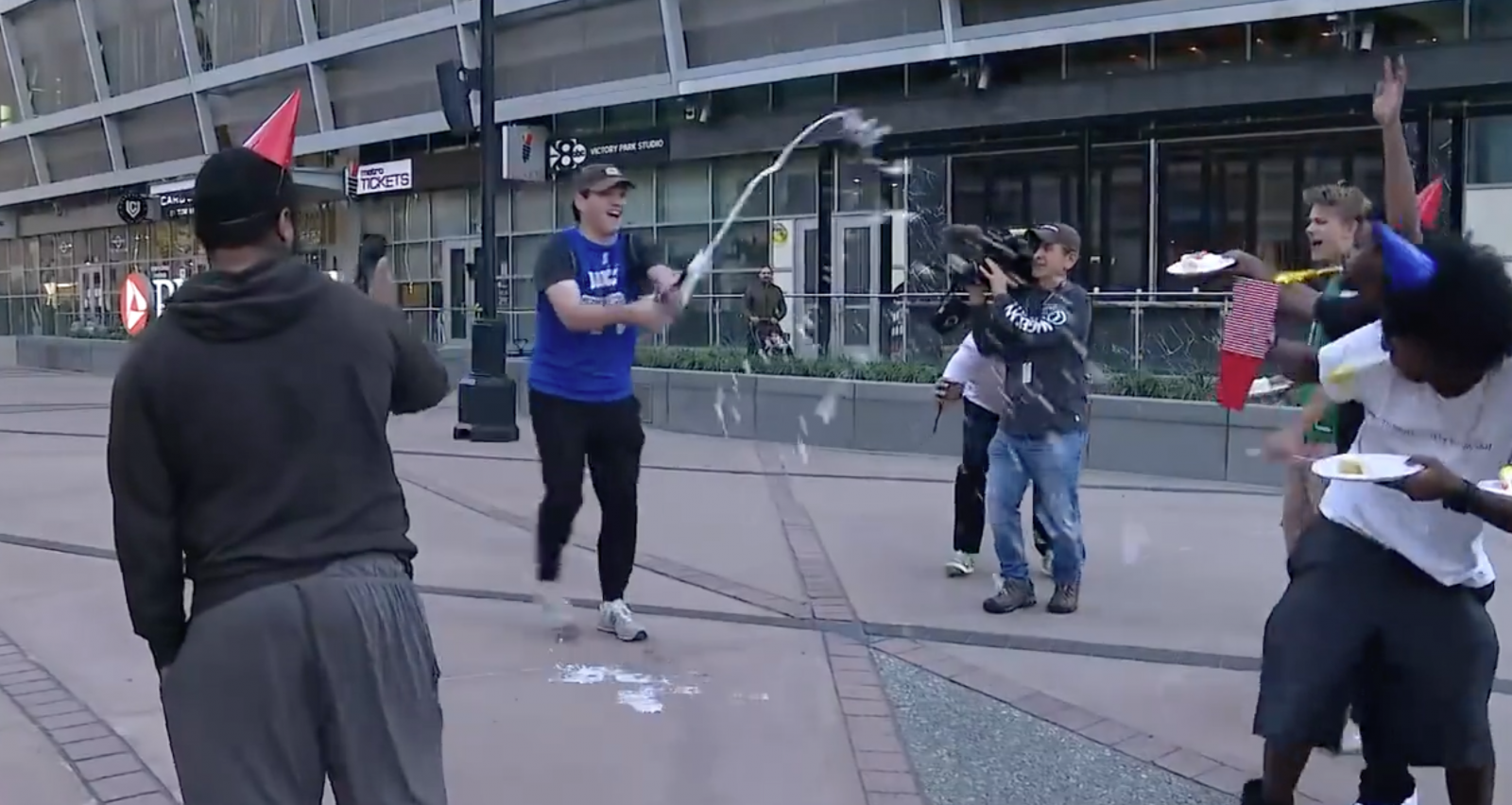หลังจากที่แฮร์ริสันถูกไล่ออก แฟน ๆ ของ Doncic ก็มาร่วมเฉลิมฉลองด้วยแชมเปญนอกสนามเหย้าของทีม Mavericks