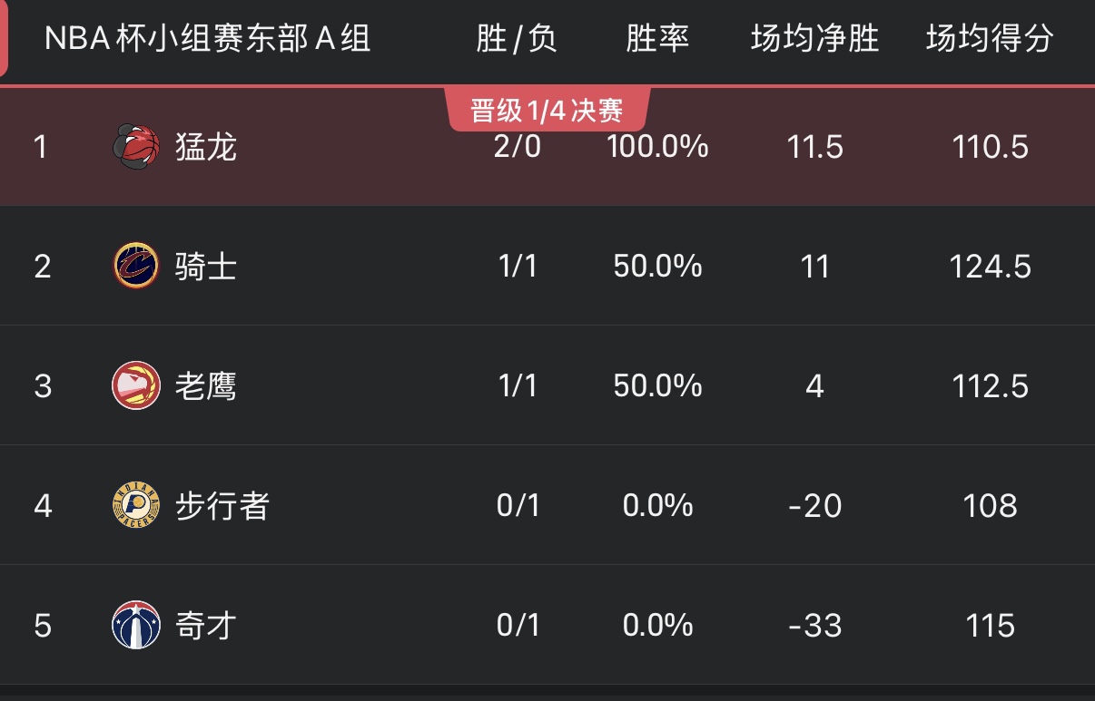 ในกลุ่มตะวันออก A Raptors อยู่ในอันดับต้นๆ ด้วยการชนะ 2 แพ้ 0 ที่สำคัญพวกเขาเอาชนะคาวาเลียร์ส และ ฮอว์กส์ สองคู่แข่งโดยตรงของกลุ่มในเกมแรก และปัจจุบัน ได้เปรียบจากการผ่านเข้ารอบ