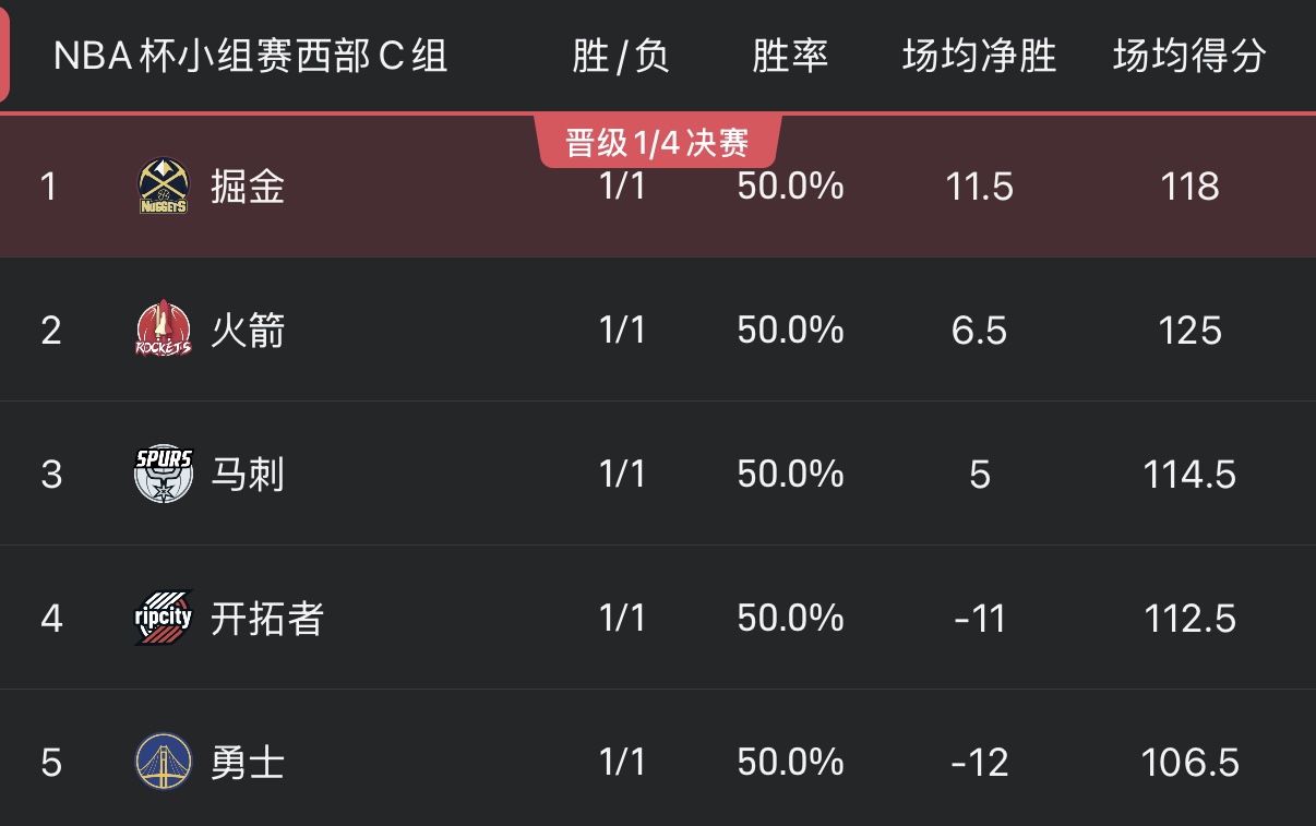อันดับแบบเรียลไทม์ของ NBA Cup: หลายทีมชนะ 2 แพ้ 0 และทั้ง 5 ทีมในกลุ่ม Western Conference Group C ต่างก็ชนะ 1 แพ้ 1