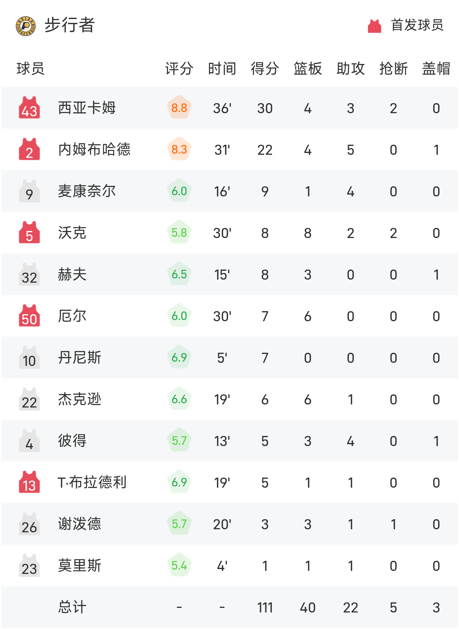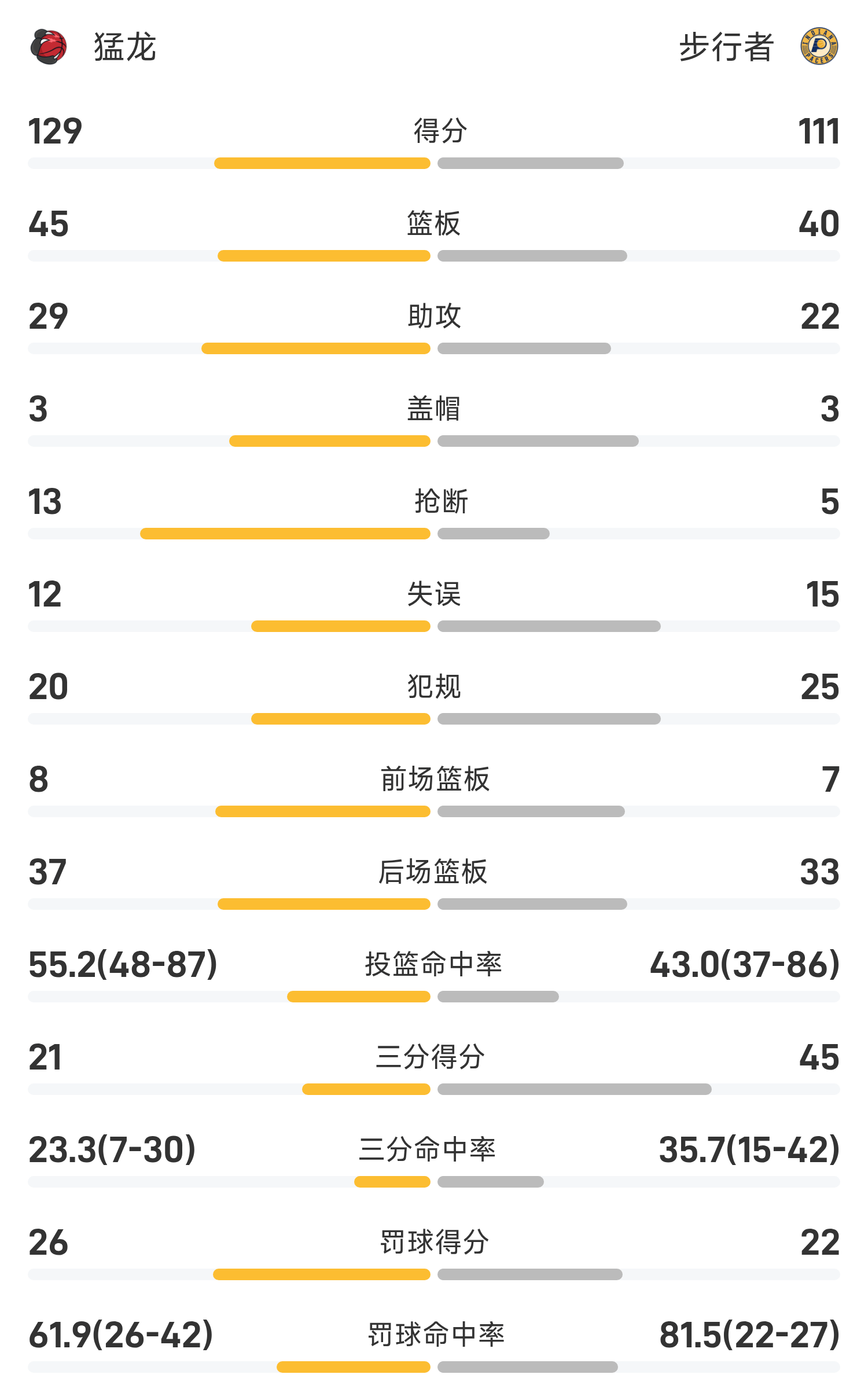 ในตอนท้ายของเกม Pacers แพ้ Raptors 111-129