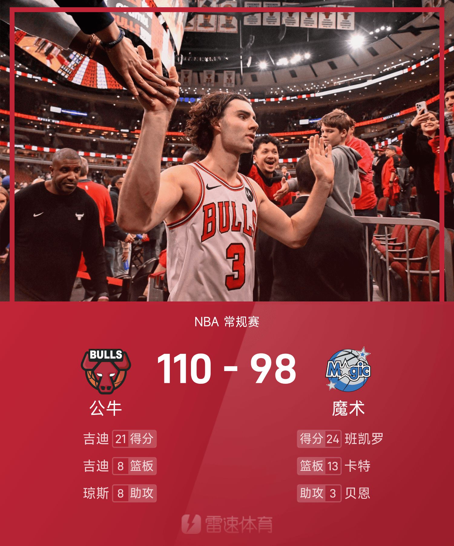 รายงานศึก NBA บันเกโร 24+10 ผู้กอบกู้ยาก บูลส์เอาชนะเมจิก 110-98