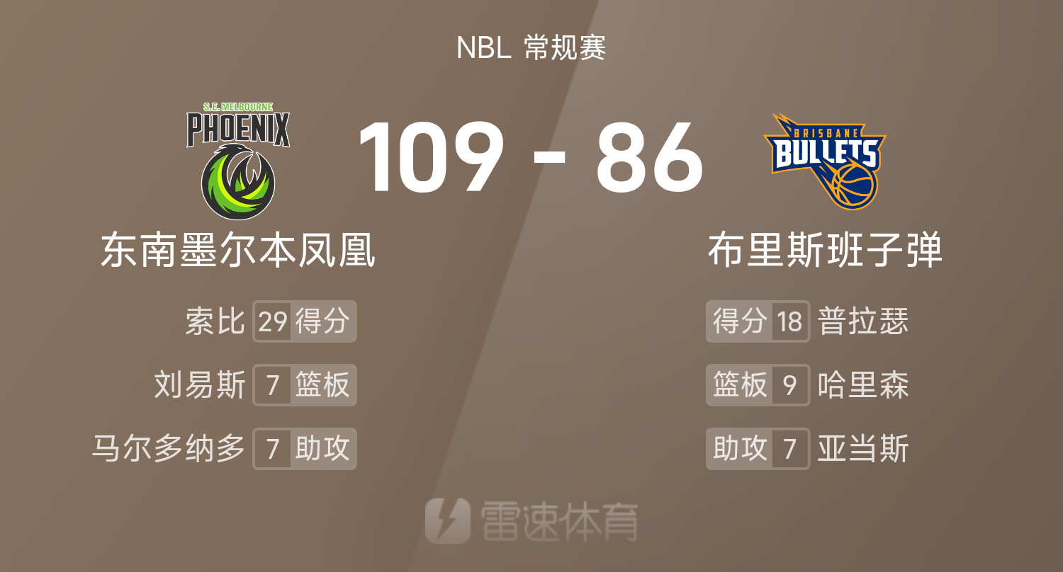 รายงานการต่อสู้ของ NBL: โซบีทำ 29 แต้ม เมลเบิร์น ฟีนิกซ์ ตะวันออกเฉียงใต้ เอาชนะ บริสเบน บุลเล็ตส์ 109-86