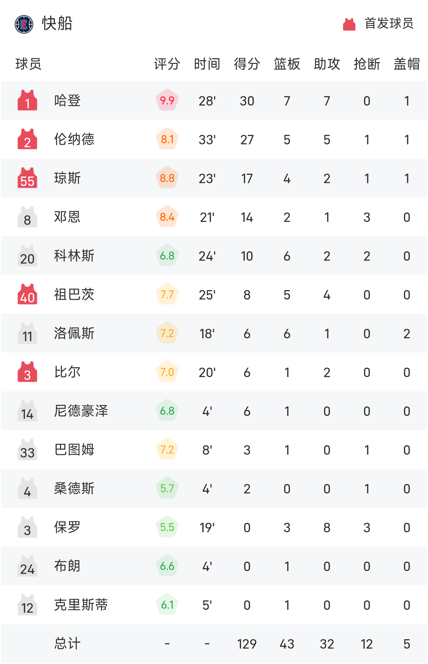 รายงาน NBA: ฮาร์เดนมี 30 แต้ม 7 รีบาวน์ 7 แอสซิสต์ คลิปเปอร์ส เอาชนะ ซันส์ 129-102
