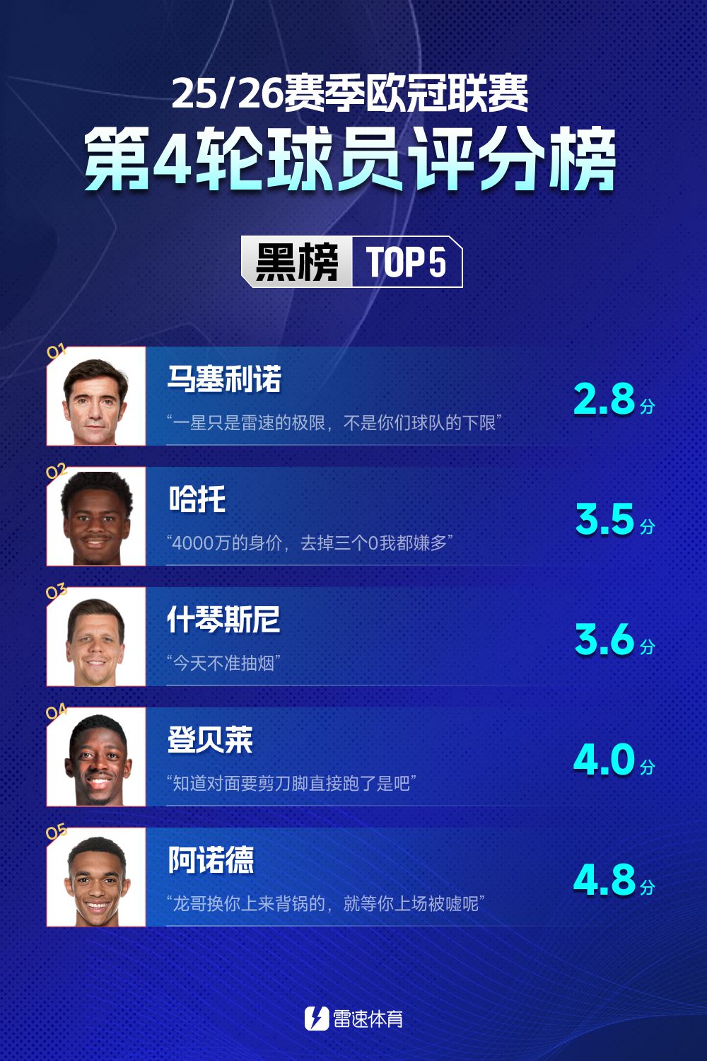 รอบที่สี่ของยูฟ่าแชมเปียนส์ลีกสิ้นสุดเมื่อเช้านี้ การต่อสู้เน้นย้ำหลายครั้งนั้นสนุกสนานมาก และการพลิกคว่ำของยักษ์ใหญ่หลายตัวก็น่าประหลาดใจ พี่น้องยังให้คะแนนและแสดงความคิดเห็นที่คมชัดแก่ผู้เล่นที่ทำผลงานได้ดีที่สุด/แย่ที่สุดในใจพวกเขา มาดูรายชื่อแดงและดำของแชมเปี้ยนส์ลีกวันนี้กันดีกว่า~