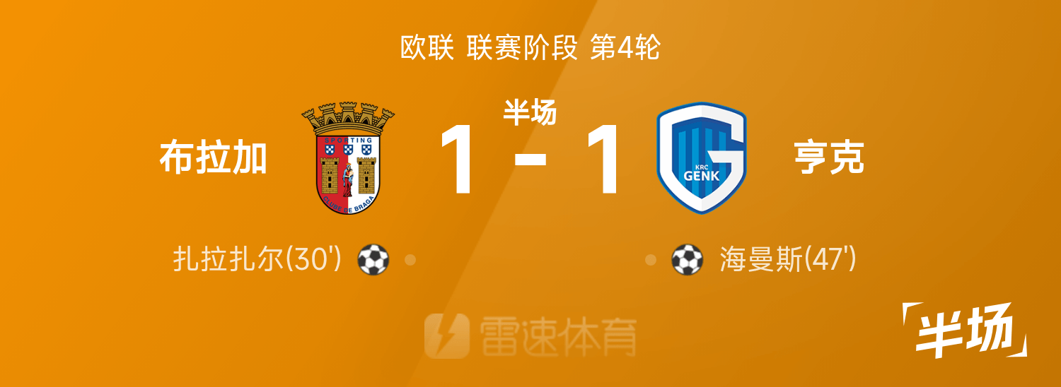 6686 Sports 07 พฤศจิกายน ในรอบที่สี่ของยูโรปาลีก 25/26 บรากาเผชิญหน้ากับเกงค์ หลังพักครึ่ง คะแนนระหว่างทั้งสองฝ่ายคือบรากา 1-1 เกงค์ โดยซาลาซาร์และเฮย์มานส์ทำประตู