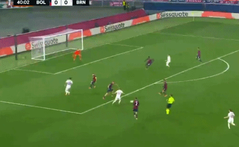 18’ เข้าประตูตัวเองที่อันตราย! โบโลญญ่าบุกจากทางขวา และแบร์นาเดสคี่จ่ายบอลจากเขตโทษเกือบเด้งเข้าปากประตู