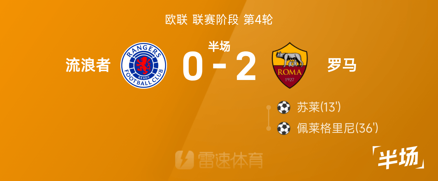 พักครึ่งยูโรป้าลีก: ซูเล่และเปเญกรินี่ทำประตู, เรนเจอร์ส 0-2 โรม่า