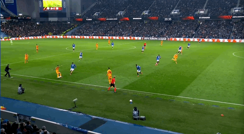 22’ ซูเลยิงประตูจากด้านนอก และผู้รักษาประตูของเรนเจอร์สก็เซฟบอลไว้จากเส้นหลัง