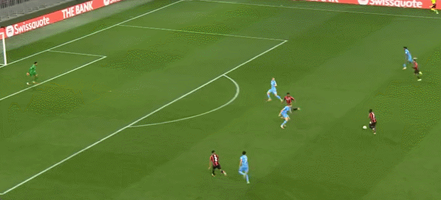 90' คาร์ลอสบุกเข้าไปในโซนสามวินาทีแล้วดันเข้ามุมไกล อาร์ตูโบลูเซฟบอลไว้ได้