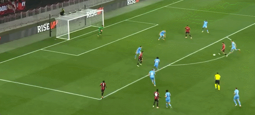 35’ เปรียบเสมือนความช่วยเหลือจากพระเจ้า! ดิยุฟเซฟสองช็อตติดต่อกันจากคู่ต่อสู้ตรงหน้าประตู