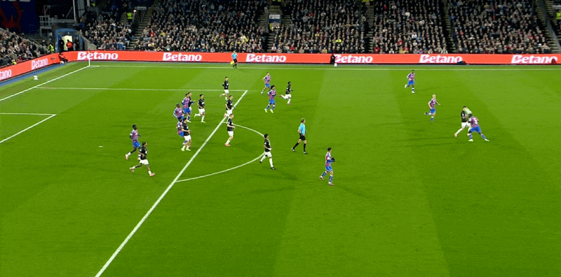 คริสตัล พาเลซ รายชื่อตัวจริง: 1-เฮนเดอร์สัน, 6-กีย์, 5-ลาครัวซ์, 26-ริชาร์ดส, 19-ฮิวจ์ส (65'20-วอร์ตัน), 8-แลร์มา, 7-ซาร์ (65'18-คามาดา ไดชิ), 2-มูโนซ (86'17 -Klein), 3-Mitchell, 10-Pino (73'55-Devenney), 14-Matteta (86'12-Uche)