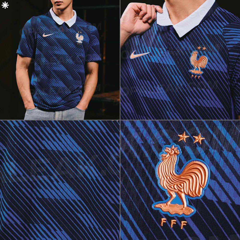 ชุดทีมใช้รูปแบบเต็มตัวสีน้ำเงินเข้ม และผสมผสานองค์ประกอบของสหพันธ์ฟุตบอลฝรั่งเศส (FFF) คอเสื้อเป็นปกโปโลสมัยใหม่ โดยมีสีขาวที่ด้านหน้าและสีน้ำเงินเข้มที่ด้านหลัง โดยมีรายละเอียดสีแดงซ่อนอยู่ที่ปกเสื้อ