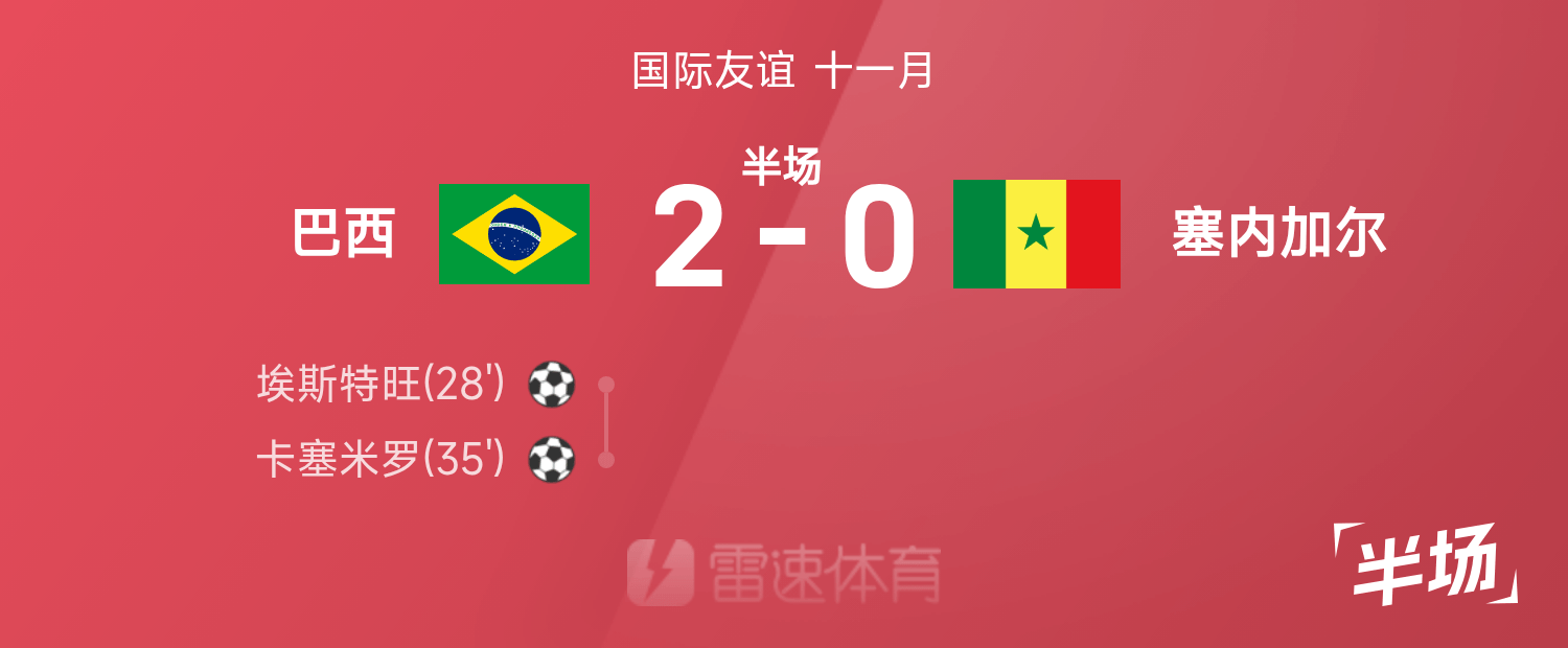 พักครึ่งกระชับมิตรทีมชาติ : เอสเตบานและคาเซมิโร่ทำประตู, บราซิล 2-0 เซเนกัล