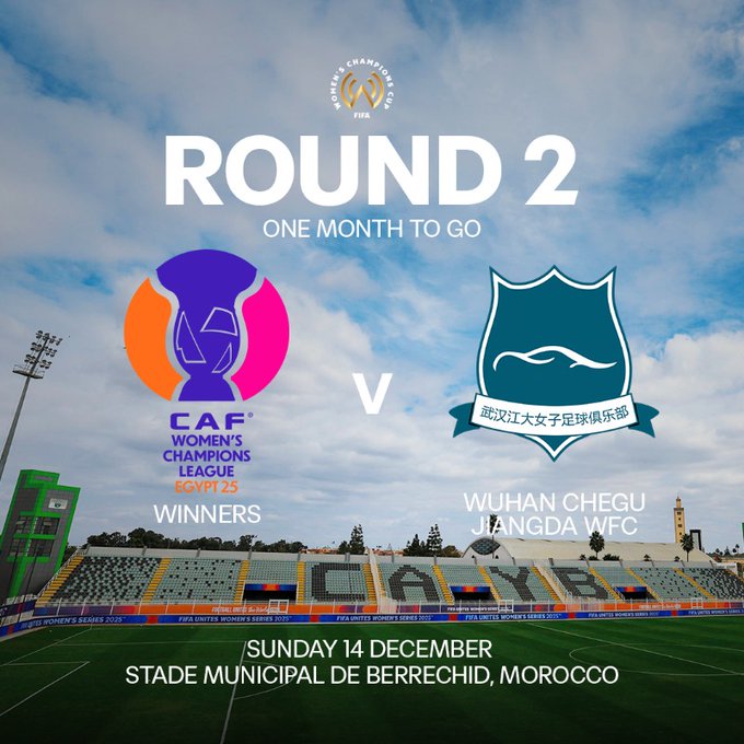 เป็นทางการ: เวลาสำหรับการแข่งขันแชมเปี้ยนส์ลีกหญิงระหว่างทีมฟุตบอลหญิงหวู่ฮั่นและแชมป์แอฟริกันถูกกำหนดไว้ในวันที่ 14 ธันวาคม