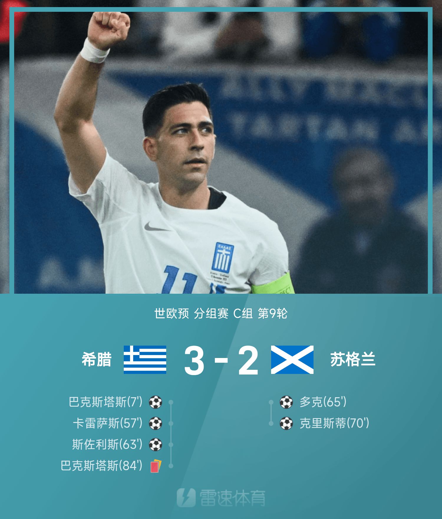 6686 Sports รายงานเมื่อวันที่ 16 พฤศจิกายนว่าในรอบที่ 9 ของกลุ่ม C ของเกมรอบคัดเลือกโลกยุโรปครั้งที่ 26 กรีซเอาชนะสกอตแลนด์ 3-2 ตลอดทั้งเกม Baxtas เป็นใบแดงหลังจากจ่ายและยิง, Szolis และ Caresas ทำประตูและทำประตู, Doak และ Christie ยิงสองประตูติดต่อกัน และสกอตแลนด์พลาดโอกาสที่จะผ่านบอล