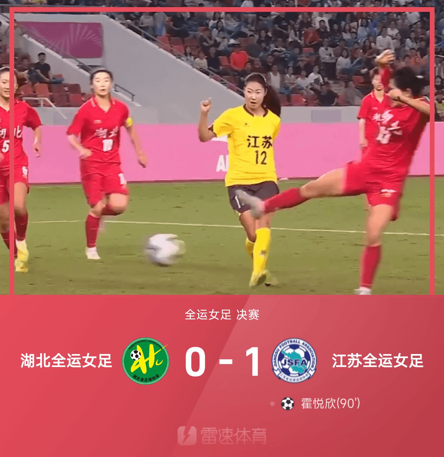 รายงานการแข่งขันฟุตบอลหญิงแห่งชาติ: นัดสุดท้ายของ Huo Yuexin ทีมฟุตบอลหญิง Jiangsu เอาชนะทีมฟุตบอลหญิง Hubei 1-0 เพื่อคว้าเหรียญทอง