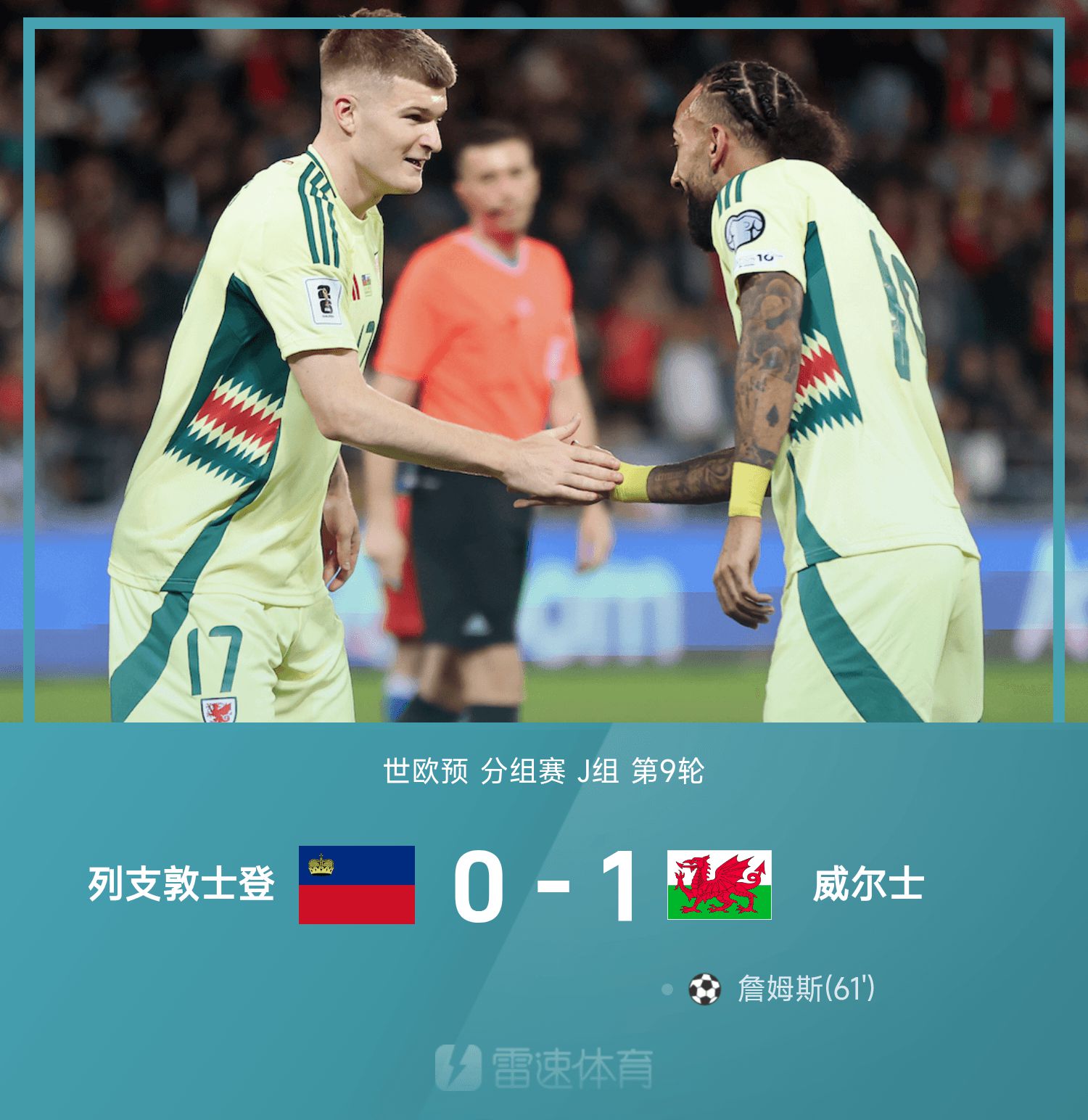 6686 Sports รายงานเมื่อวันที่ 16 พฤศจิกายนว่าในรอบที่ 9 ของกลุ่ม J ของรอบคัดเลือกโลกยุโรปครั้งที่ 26 ลิกเตนสไตน์จะเผชิญหน้ากับเวลส์ในบ้าน ในครึ่งแรก บร็อดเฮดทำประตูได้ แต่ผู้ตัดสินเข้ามาแทรกแซง และผู้ตัดสินวิดีโอตัดสินว่าประตูไม่ถูกต้อง นาทีที่ 61 ของครึ่งหลัง เจมส์ ยิงประตูเดียวของเกมปิดเกม ในท้ายที่สุด เวลส์เอาชนะลิกเตนสไตน์ได้อย่างหวุดหวิด 1-0 และคาดว่าเวลส์จะผ่านเข้ารอบฟุตบอลโลกในรอบแบ่งกลุ่ม