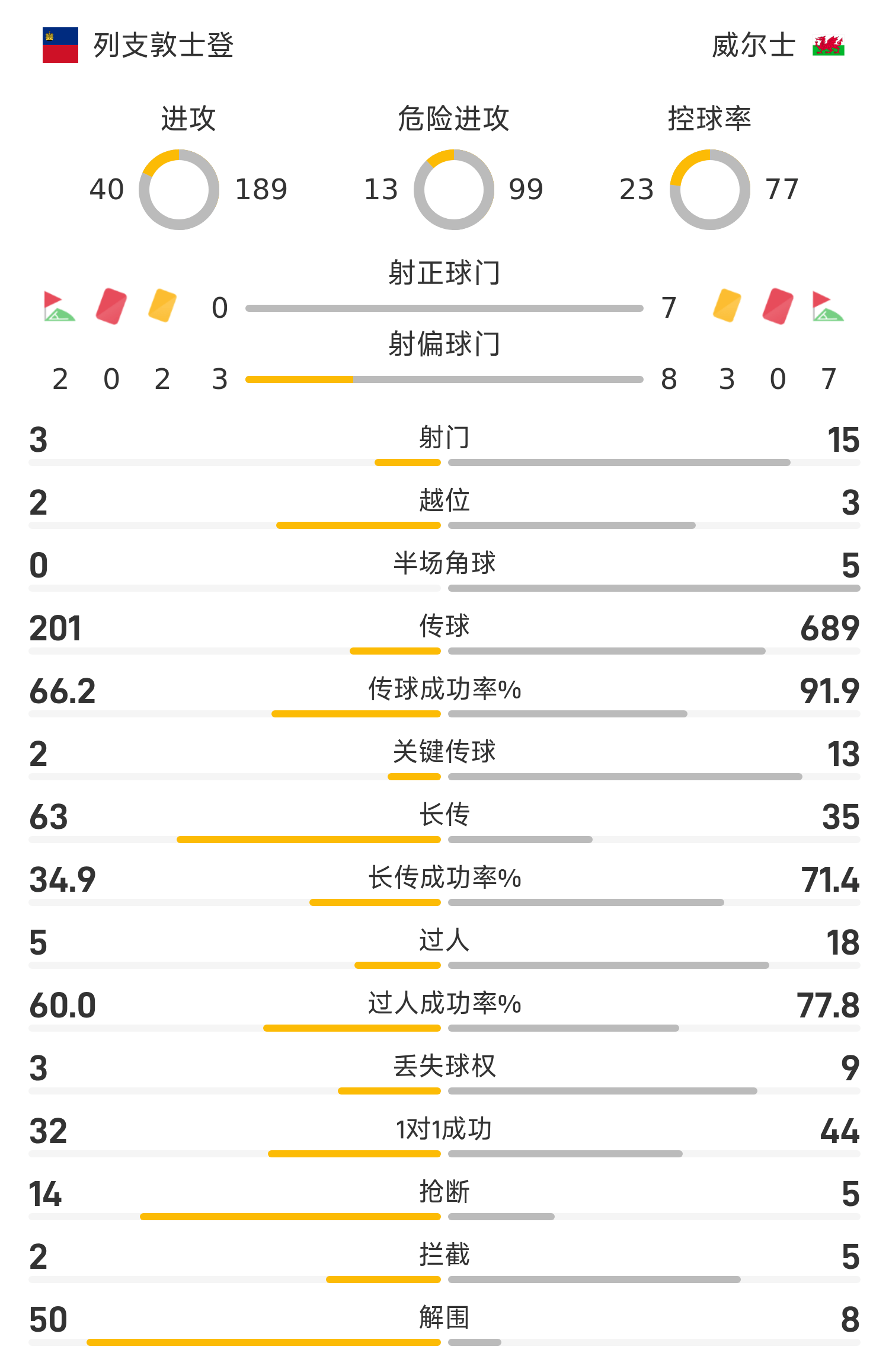 เวลส์ รายชื่อตัวจริง: 1-ดาโลว์, 15-ดา ซิลวา, 6-โรเดน, 3-วิลเลียมส์, 4-ลอว์เลอร์, 20-เจมส์ (66 ฟุต 7-บรูคส์), 5-อัมพาดู, 19-โธมัส (83'11-จอห์นสัน), 17-เจมส์ (77'10-คัลเลน), 18-แฮร์ริส (66'9-คูมาส), 23-บรอดเฮด (65'8-คีเวลล์)