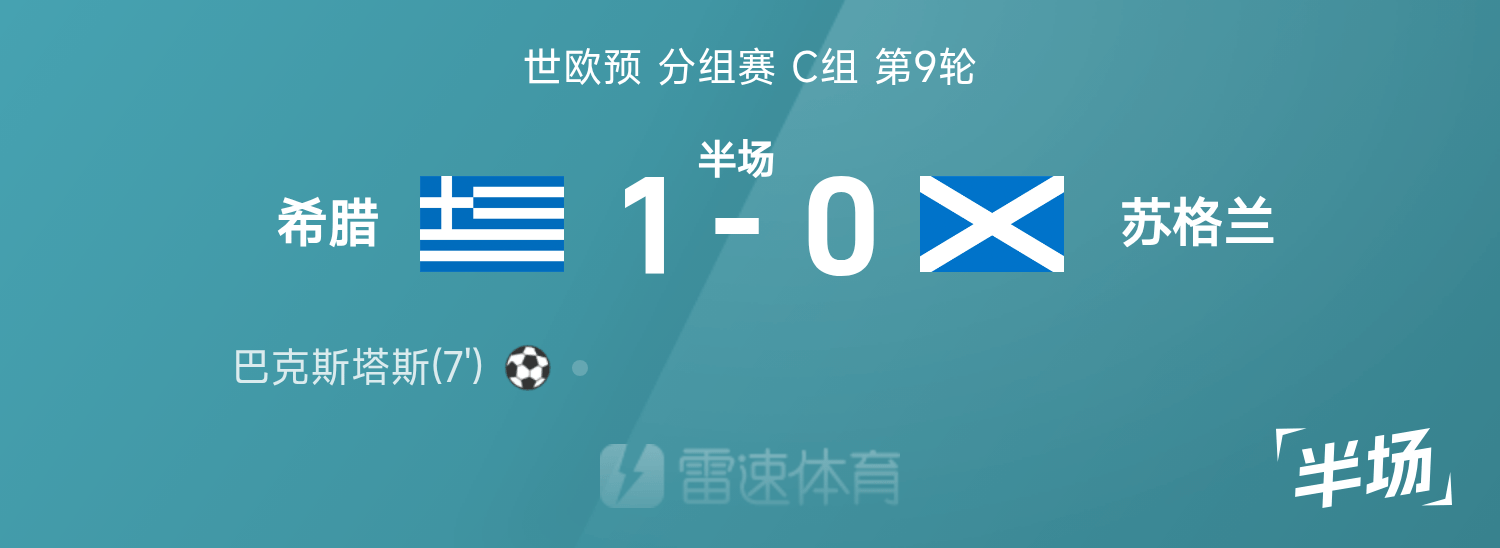 พักครึ่งแรกของยุโรปโลก: แบ็กซ์ตัสทำประตู, พาฟลิดิสออกจากตำแหน่งเนื่องจากอาการบาดเจ็บ, กรีซ 1-0 สกอตแลนด์