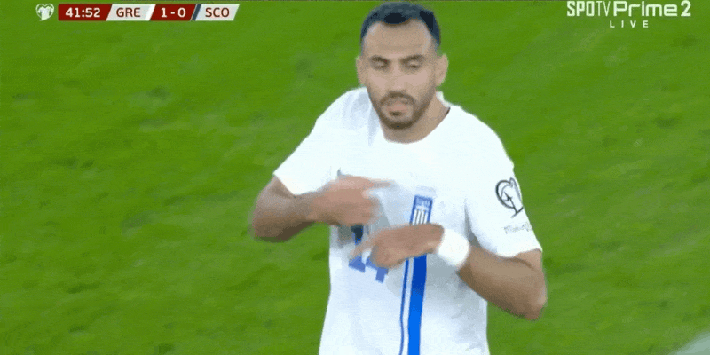 รายชื่อผู้เล่นตัวจริงของกรีซ: 1-Vlachodimos, 21-Tsimikas, 5-Resos, 2-Vajianidis, 3-Koulierakis, 11-Bakstas, 6-Kourbelis, 10-Szoli Si, 19-Karesas, 8-โมซากิติส, 14-ปาฟลิดิส (43'18-เทต)