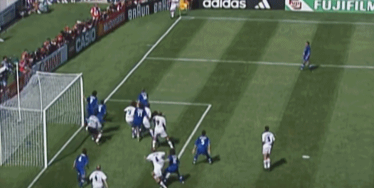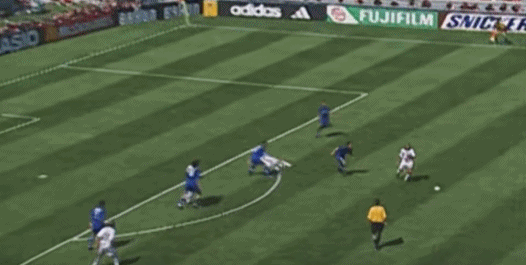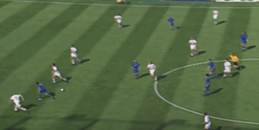 ต่อจากนั้น เดล ปิเอโร รับบอลจากทางซ้าย แกว่งไปทางซ้ายและขวา และสุดท้ายก็เหยียบบอลและล้มลงกับพื้น