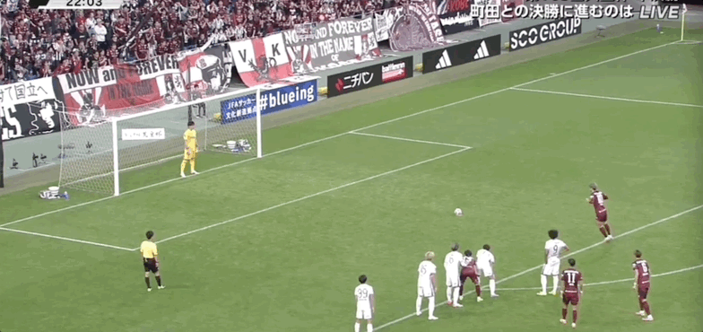 17’ ริคุโตะ ฮิโรเสะ ล้มลงกับพื้นในโซนสามวินาทีและผู้ตัดสินไม่ได้แสดงความคิดเห็น