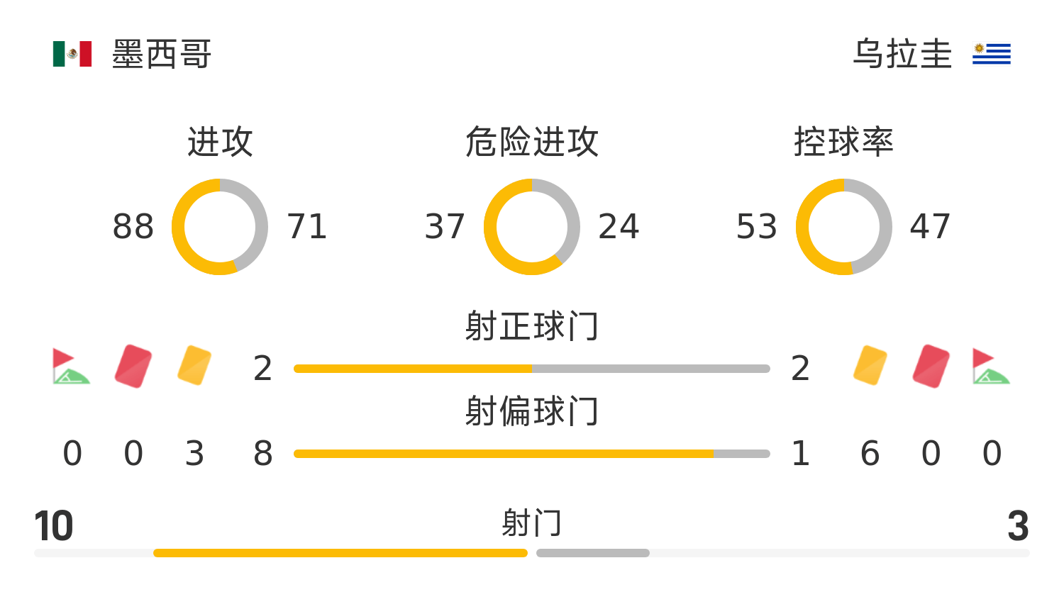 71' ฮิเมเนซโหม่งบอลจากหน้าโซนสามวินาทีพลาด แต่ผู้ตัดสินผิวปากเพราะกองหลังชาวอุรุกวัยฝ่าฝืน