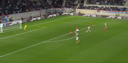 60' บากูหยุดบอลที่ด้านบนของส่วนโค้งเพื่อปรับและเป่าบอลเข้าหาประตู ลูกบอลลอยเหนือคานและออกจากอัฒจันทร์