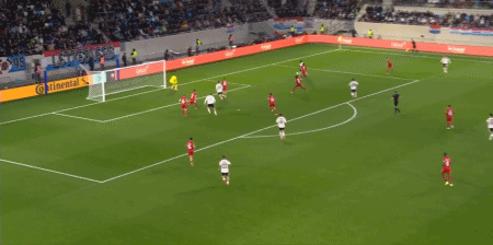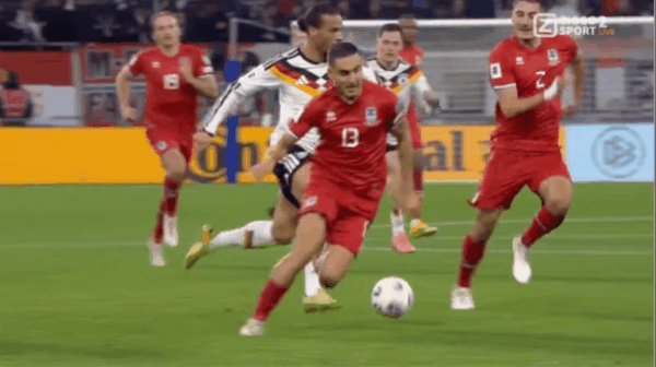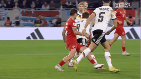 รายชื่อผู้เล่นตัวจริงของเยอรมัน: 12-Nuber, 21-Damen, 15-Schloterbeck, 2-Jiafu, 18-Brown, 6-Kimich, 13-Nmecha, 16-Shad, 9-Vedraogo, 14-Sayed Mara, 10-Burkert, 7-Llewelyn