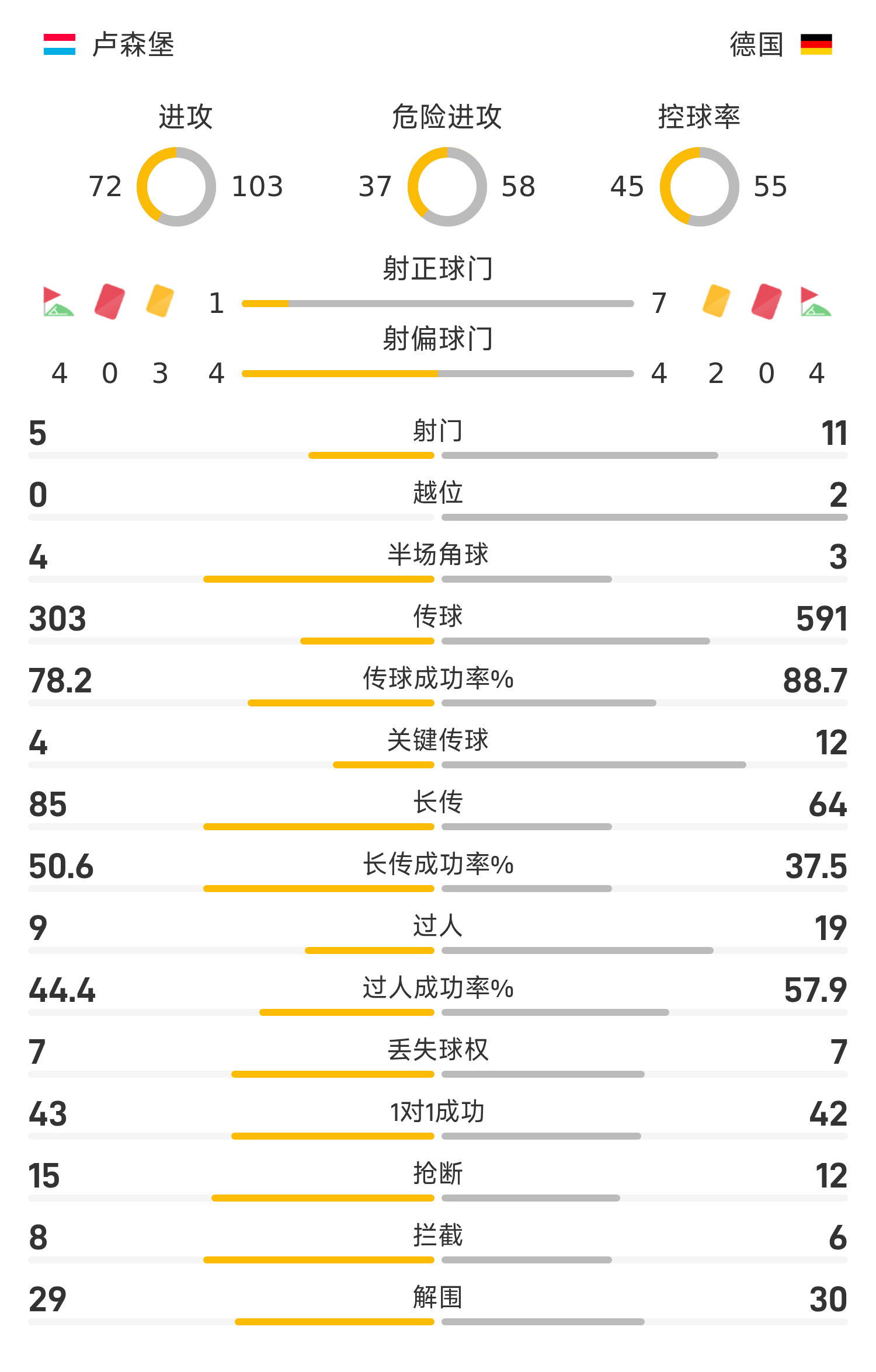 ลักเซมเบิร์กรายชื่อตัวจริง: 1-Morris, 18-Youngs, 4-Bonet (46'22-Martins), 13-Carlson, 2-Kolak, 8-Martins (79'5-Kurchi), 15-Tier (71'6-Cruz), 16-แบร์ ลัว, 19-โอลสัน (79'3-เอ็มบาโล), 7-ดาดาริ (88'21-ฮิลล์), 10-เซนานี่