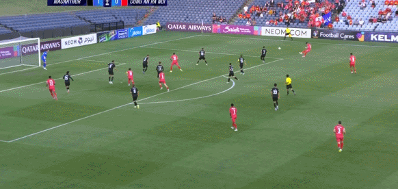 28' ฮานอยจ่ายบอลไปยังพื้นที่สามวินาที โดยคว้าส่วนหัวของโค้ดเดอร์ทั้ง 12 ตัวและถูกทำลายโดยคู่ต่อสู้