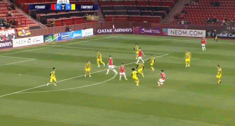 49' จ้าว ไซซุน ส่งบอลไปที่เสากลางของเขตโทษ แต่อัลฟองโซ แซงหน้าและพลาดบอล