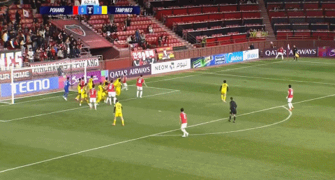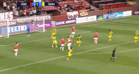 31' แทมปิเนส วันเดอเรอร์ส สกัดบอลแล้วโต้กลับ ทาเคชิ โยชิโมโตะ ยิงประตูจากด้านซ้ายของกรอบเวลา 3 วินาที และถูกสกัดกั้นจากเส้นหลัง