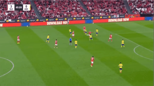 เบนฟิก้า รายชื่อตัวจริง: 1-ทรูบิน, 30-โอตาเมนดี้, 8-อาเธอร์ส, 26-ดาห์ล, 44-อาเราโฮ, 11-ลุค บาจโจ้ (77'90-ลิมา), 10-ซูดาคอฟ (63'18-บาร์เรโร), 5-บาร์เรนีเช่ เอเชีย, 20-ริออส (67 ฟุต 84-เรโก), 25-เพรสเตียนี่ (63 ฟุต 21-ชเยรุป), 14-พาฟลิดิส (77 ฟุต 9-อิวาโนวิช)