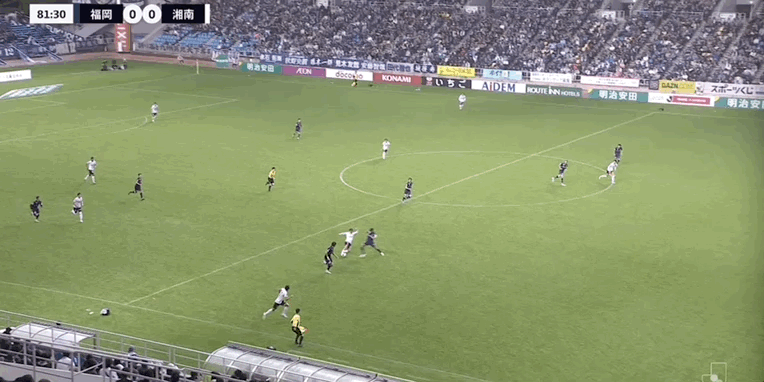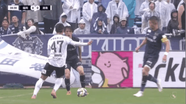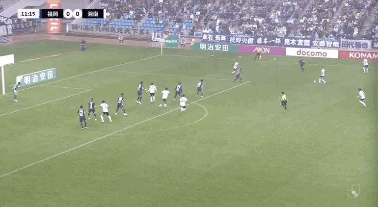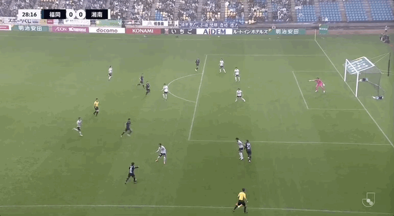 55' ซูซูกิ โชโตะโหม่งบอลในโซนสามวินาที ผู้รักษาประตู ฟุกุโอกะ ยึดบอล