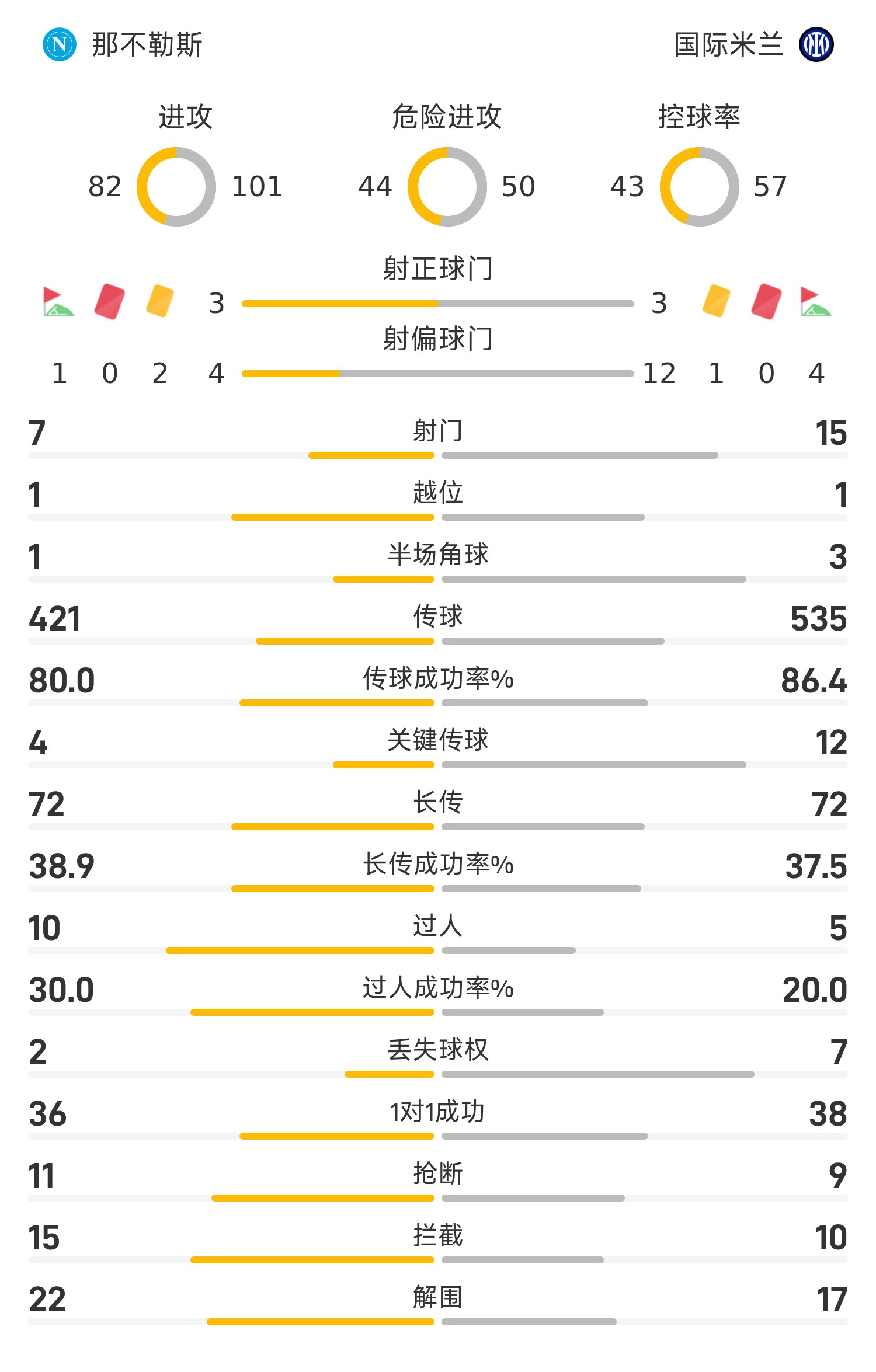15’ เลาตาโรมีโอกาสที่ดีเยี่ยมในโซน 3 วินาที และผู้รักษาประตูเนเปิลส์เซฟลูกยิงได้
