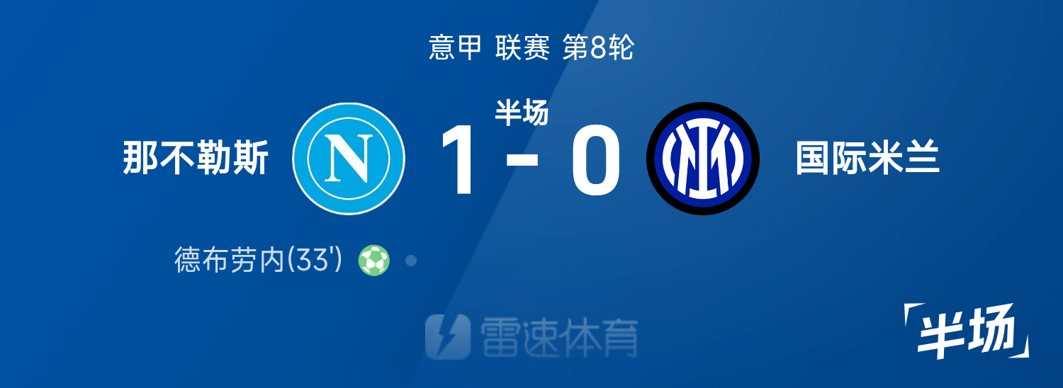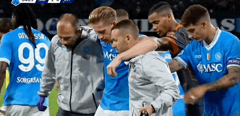 กัลโช่ เซเรีย อา ครึ่งแรก : เดอ บรอยน์ อำลาอาการบาดเจ็บหลังยิงจุดโทษ นาโปลี 1-0 อินเตอร์ มิลาน
